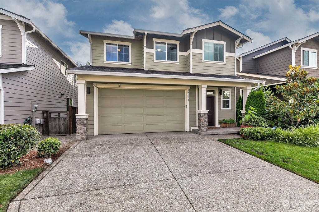 Discover this exceptional 2,622 SF home, where modern living meets ultimate comfort. The lower level features a half bath, a versatile den, and an eat-in kitchen with sleek stainless steel appliances, a walk-in pantry, and an extra breakfast bar. Cozy up by the fireplace in the living room or unwind on the private balcony. The two-car garage ensures ample parking and storage. Upstairs, a spacious landing leads to a utility room, a full bath, and three inviting bedrooms. The primary suite features a generous walk-in closet and a 3-piece bathroom. Set in a vibrant community with parks, scenic trails, and athletic courts, this well-maintained, move-in-ready home offers contemporary charm and easy access to grocery stores and freeways.