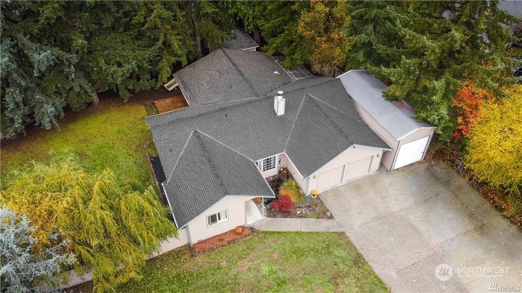 Amazing opportunity in the coveted neighborhood of Wilderness Estates. This 1900sqf single story home on a fully fenced nearly half acre features vaulted ceilings and fire place in the living room, galley kitchen, office off the kitchen with it's own entrance, large rec room with wood burning stove, Primary suite with 3/4 bath, hickory hardwood floors, quartz countertops and subway tile backsplash. Kitchen and rec room open to the deck and backyard. Fully enclosed private hot tub, RV parking garage, plus a 2 car garage, Outdoor Shed, wired for generator and more! Home is located in a cul-de-sac on a dead end with plenty of parking.