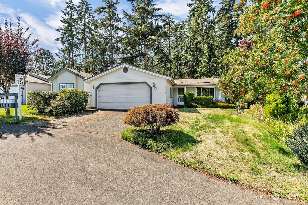 Listen to the birds while you enjoy your morning coffee on your back porch that's next to an adjoining designated natural area. Or greet the dog walkers on your front porch while you enjoy the view of Mt. Rainier. Lots of amenities: large kitchen with eating nook, ample cupboards and counter space, gas fireplace in the family rm, formal dining rm, double car attached garage, Hardie board siding, sprinklered yard, fully fenced, skylights, ceiling fan, vaulted ceilings, gated 55+ community, club house, gym, RV parking available, close to shopping and fire station. 1 year Home Warranty provided. New Roof! Lot rent: $745/mo. 55+ Park.