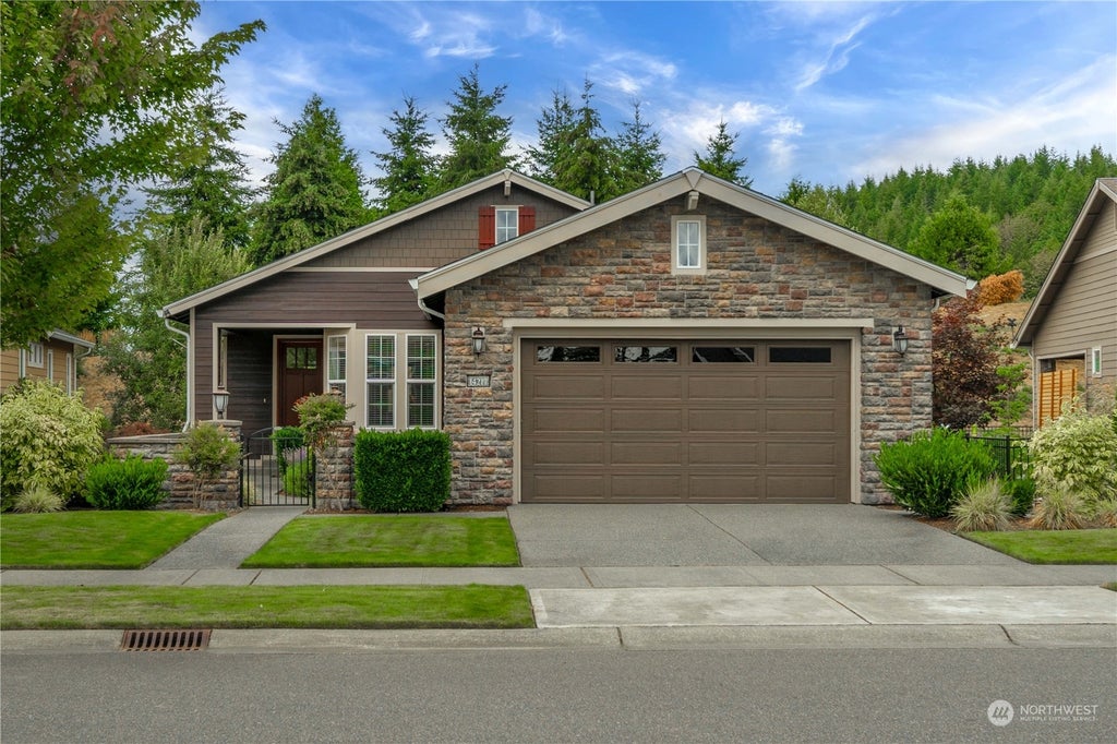 Resort 55+ living at Trilogy at Tehaleh! Very popular & highly upgraded "MONACO" just steps to the Lodge! The perfect home for the discerning buyer who appreciates high-end upgrades. The beautiful courtyard welcomes you into this stunning home boasting of gorgeous Engineered hardwoods, Quartz counters, two fireplaces, window coverings, AC. A wall of glass leads to a private covered patio w/ stone fireplace. Garage is finished & insulated w/ shop space & a heater. Lot offers space between neighbors, low maintenance, mature plantings & privacy. W/ HOA approval buyer can plant w/in the 10' past rear property line to create your own oasis! Steps to the Lodge w/ pool/fitness/restaurant & more! $7500 Club fee has been paid & transfers to buyer!