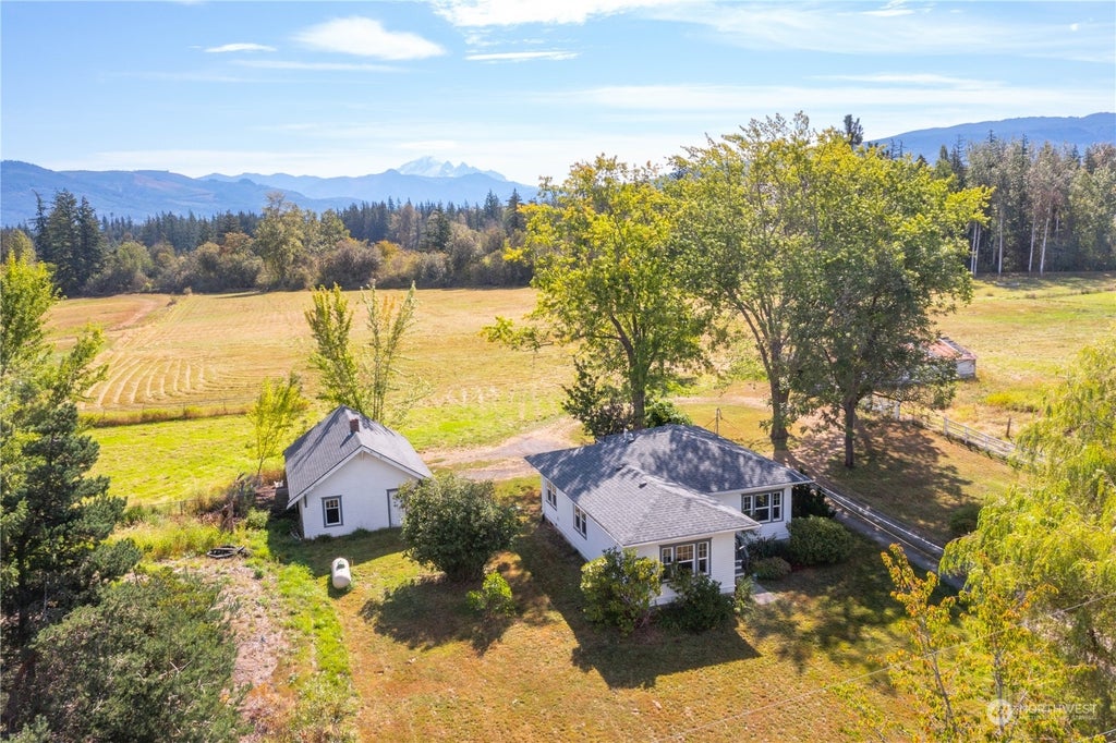 Classic little Whatcom County farm house on 7.51 level acres in pasture & hay with Mt Baker view! 3 bds, 1 bath, approx 1200sf, new roof on the house and detached garage, new interior paint, carpet, fridge & dishwasher. Forced air gas heat, lots of double pane windows , open kitchen/dining with cabinets galore, amazing pantry, and bar seating at the island. Sunny garden window over the sink, dining area windows look out over peaceful, pastoral & mountain views. Good individual well and 3 bdrm septic. Possible potential (buyer to verify) to keep current home as ADU and build in the back. Great location, just 15 minutes to downtown Bellingham.