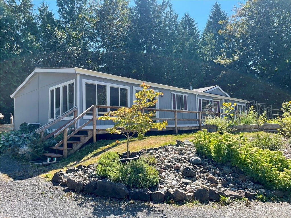 Motivated Seller! Beautifully set at the top of the driveway like an eagles nest looking out over the domain. Natural filled light within this spacious home and is move in ready! Enter into the livingroom with new wood stove and tile entry. Formal dining room then the kitchen with new range w/air frier, newer appliances and such a comfortable feeling home. the family room is past the kitchen and there is room to roam here! 3 bdrms, guest bath nicely tiled with walk-in shower. Utility room and plenty of pantry/storage.New architectural roof and skylights, new deck, 16x20 shed and carport. Along side that is room for a garage. Fenced back yard and landscaped for low maintenance. New pump house and water pump. Garden and wood shed as well.