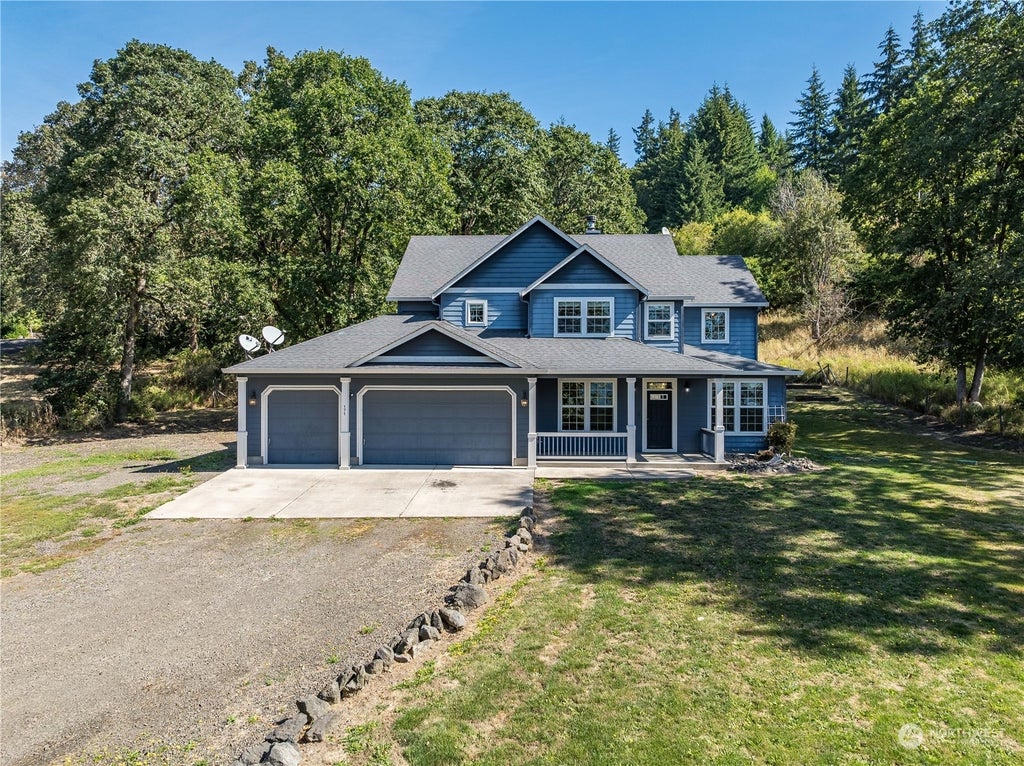 Come see this rambling two story country home just minutes to I5 yet tucked away in a peaceful setting surrounded by majestic oak trees. NO HOA, NO CCRS. Two usable acres with 1.5+/- acre fenced pasture. Great spot for shop on N. side of home & possibility for ADU-check with county. Great covered front porch & lap concrete siding plus 3 car garage. Back yard offers large concrete patio for relaxing/BBQ's. Interior includes formal dining room, 2 sided FP & den/office could be 4th bedroom. Open concept kitchen/living. Granite counters & eating bar. All stainless kitchen appliances included & newer heat pump. Upstairs is a huge bonus room plus primary w/jetted tub & WI shower. Additional full bath & 2 more bedrooms.