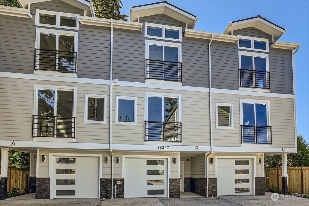 Stunning new multi-home community developed by local Shoreline resident builders. This three bedroom, two and 3/4 bath home is targeting 4-Star Green Built and just a short walk away from the newly opened 185th St Shoreline Light Rail Station. Expansive floorplan throughout. Custom quartz countertops in your entertainer's kitchen with SS appliances, convection cooking, as well as a large island with seating for four. Two upper-level bedrooms with vaulted ceilings and gorgeous full baths. Ductless HP mini-splits for year-round comfort, tankless water heater, and fire-sprinklers. You'll appreciate this quiet residential street, the award-winning Shoreline schools, and Cromwell and Shoreline Parks. 2 units in contract, 3 still available.