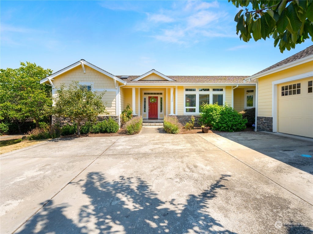 Welcome home! This Orchards home offers open floor plan with timeless finishes - stainless appliances, walk-in pantry, butlers pantry between kitchen and formal dining room, elegant granite + matching hearth. Main level includes primary with ensuite, ample room for entertaining with open living rooms with access from double doors onto deck space. Stunning views of Mt. Baker + sprawling orchards from deck space with access to lower slate patio with edible landscaping by master gardener. A dedicated office space with French doors & views complete the main level. Lower level includes 3 bedrooms, full bathroom, bonus family room, dedicated utility room & generous storage closets. 2 car garage & easy access to community common space.