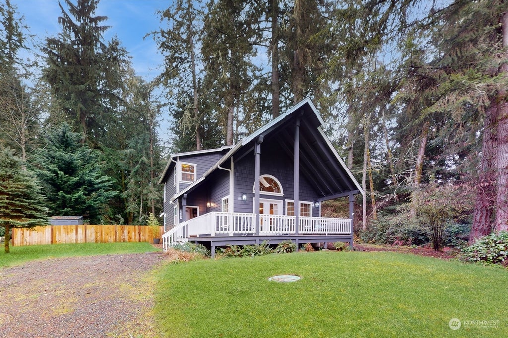 Impeccable 3-bedroom, 2-bathroom home, located just steps from Josephine Lake, featuring a freshly painted exterior, a new roof, new carpeting, new appliances, new cedar fencing, vaulted ceilings and a captivating stone fireplace. Enjoy your morning coffee on the expansive wraparound deck or host a barbecue in the fenced backyard. A short walk will lead you to a private dock, ideal for kayaking, swimming, or fishing. As a member of the Riviera Community Club, you will benefit from access to exclusive lakeside parks, sandy beaches, hiking trails, premier fishing at three freshwater lakes, and recreational facilities including tennis and pickleball.