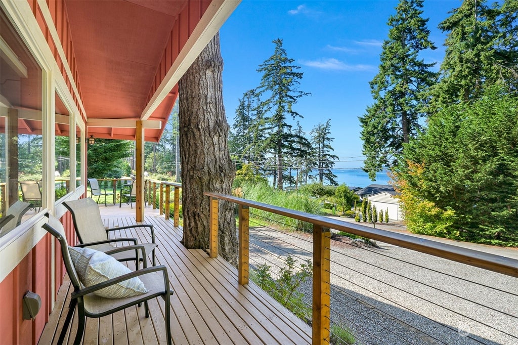 One level living at the end of a quiet, dead-end road, across the street from the waterfront. FEE SIMPLE ownership, not leased land. Relax on the deck & enjoy the peaceful, sunset views of Skagit Bay. This updated home has a warm, cabin like feel with hardwood floors, wood wrapped windows, vaulted ceiling, & cozy woodstove. Huge primary bedroom could be divided to create a 3rd BR. New roof, carpet, & tile. 36' x 24' shop / garage has a single door but a 3 car width. Extra area off primary can be used as office. Private setting with large yard area & plenty of parking for boat or RV. Hydronic baseboard heat. Enjoy an easy Pacific Northwest lifestyle, close to the fun of La Conner & Anacortes. Pre inspection report is available. What a find!