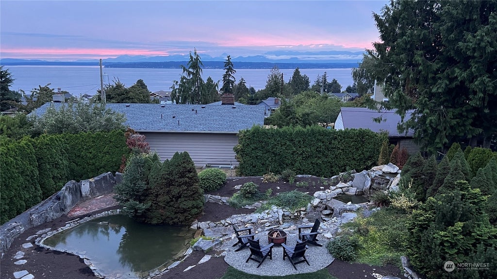 Richmond Beach renovation with views of the Puget Sound and Olympics! The vintage feel has been maintained, with new and fresh updates throughout. 15' accordion slider door creates indoor/outdoor living that makes the mountain and water views part of this home. Soapstone countertops, GE Cafe appliances, farm sink, and brass hardware make this elevated kitchen a chef's dream. New- LVP flooring and carpet, roof, energy efficient Marvin fiberglass windows, gas furnace and AC. Relax and enjoy the views from the Trex deck, or by the waterfall and firepit. 800sqft primary retreat with show stopping views, 2 walk-in closets and laundry, wet room w/ double showers and soaking tub. Finished flex space in basement, as well as storage and laundry.