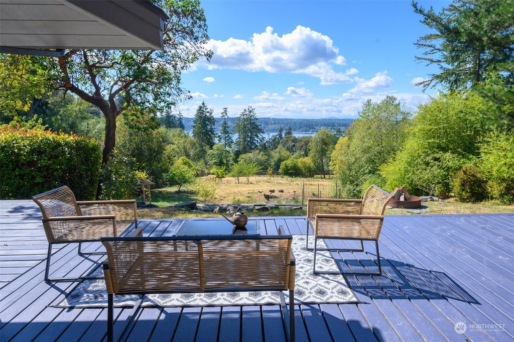 Experience modern luxury in the sought-after North End neighborhood of Vashon Island with this tastefully updated 3-bed, 2-bath home. A This single level residence combines contemporary design with thoughtful updates. Light filled, open & casual living and dining areas, the kitchen is a chef's dream with ample space and stainless appliances. The primary bedroom showcases a west facing view, spacious bath with a double vanity & modern finishes. The open layout is enhanced by abundant natural light and sophisticated design elements. Outside is 1.7 acres of land with expansive decks, garden, trails, lavender hillside, fruit and nut trees, a seasonal pond and is fully fenced. Moments from the ferry – a rare find for the north end of Vashon.