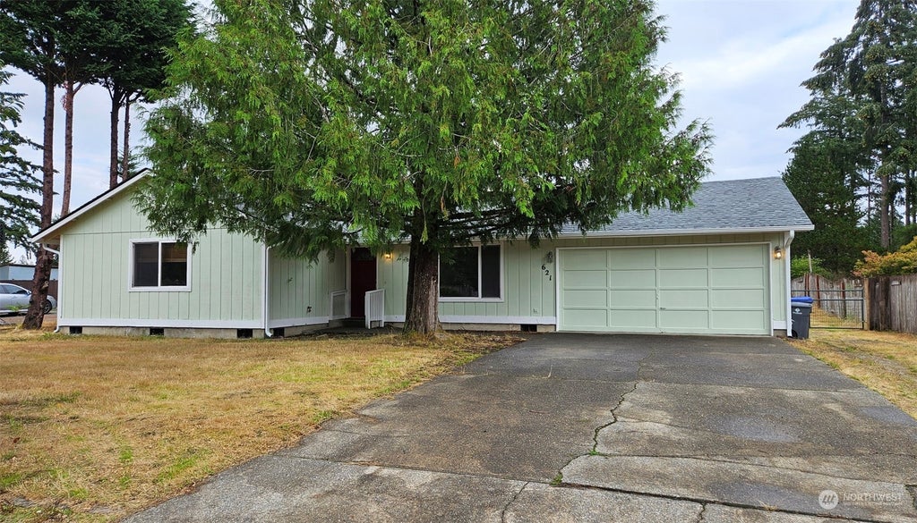 This 3 bedroom, 1.75 bath rambler is conveniently located in the Oak Park neighborhood in Shelton near many stores, restaurants, and services. Feel confident about the brand-new roof and gutters, plus enjoy the fresh paint and some interior updates. The 2-car garage has been converted into 2 extra rooms (office? homeschool space? den? storage? craft room?) but could easily be converted back. Large, fenced backyard has a shed, deck, grapevine, garden boxes ready for your green thumb, and a hot tub. No HOA dues, and all appliances stay! Come see it today!