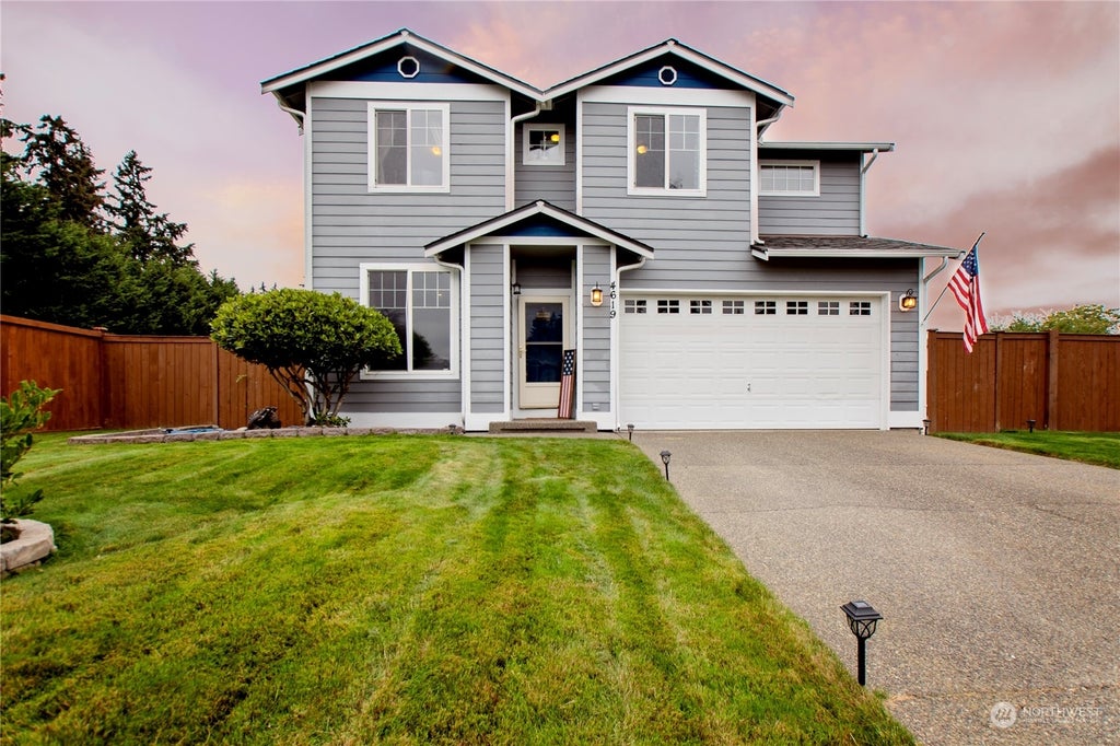 Discover this stunning home in the gated Fairway Estates, nestled on a peaceful cul-de-sac. Well maintained home w/new Furnace in 2023 and AC, Roof in 2019, new paint & water heater. Walk into home w/open concept living w/gas FP in LR, large DR with big windows for light and seamlessly flows into large, updated kitchen with new appliances. Utility RM w/all appliances staying, and half bath round out the downstairs. Upstairs loft for office/entertainment area and 4 Bedrooms/Main Bath. The Primary BR offers a luxurious 5-piece bath and a walk-in closet. Highlights include RV parking, a storage shed, a gravel fire pit, and ample backyard space. Conveniently located just around the corner from the golf course, JBLM, Shopping and Freeways!