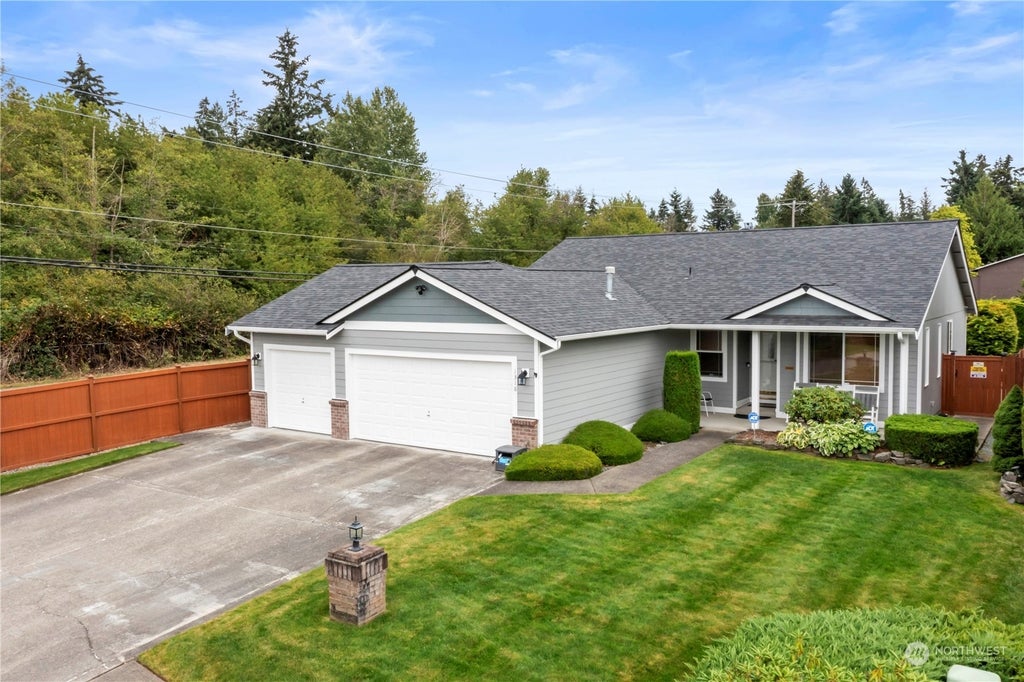 One level living at its finest. Home is truly spotless!! This three-bedroom 2 full bath turn-key home features a three-car attached garage and a two-car garage/shop (potential mother-in-law apartment) out back. Some of the features are vaulted ceilings, rounded corners, AC, tile entry, covered patio, tile hearth and beautiful wood mantel over fireplace, 2" blinds, primary bedroom suite with a five-piece bath the list goes on and on. Wired for generator, exterior door both garages, you can access the backyard for extra parking from a double gate on 14th. Since 2022 added upgrades, new roof (40 year), new furnace & A/C, exterior paint, new kitchen appliances (Kitchen Aid). One year home warranty included in Sale!!