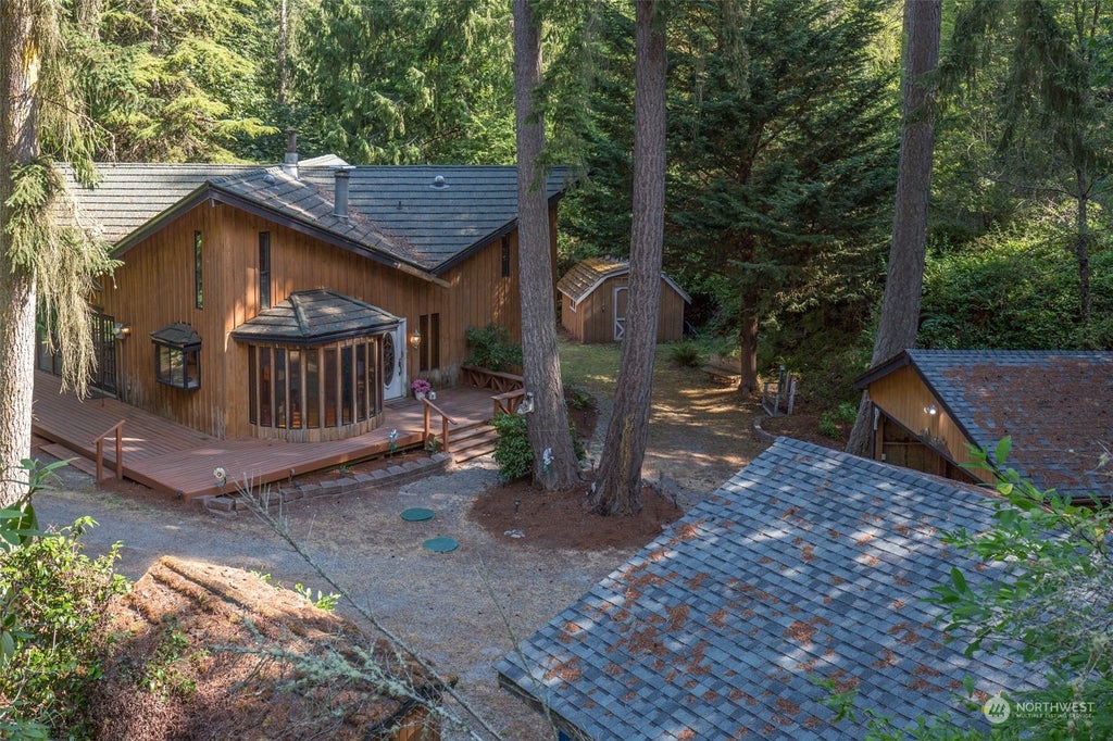 Must See! Secluded 3-bedrm, 2-bathrm Better Homes & Garden inspired house design, unique 5 pitch roof. Stunning vaulted wood ceilings. additional Loft room upstairs with large bathroom and sunken bathtub. Wooded surroundings with wide 3/4 wrap around desk to enjoy the wonderful outdoors, on McDonald Creek. 2 Garage door one side for storage or park your car, other side used as a shop with built in cabinets, additional large carport large enough for 2 cars and additional storage, separate storage shed, plus a small yard or tool shed. Listing price includes an additional vacant lot that could be used to build an additional home or sold to be developer. Buyer to verify uses on the second lot.