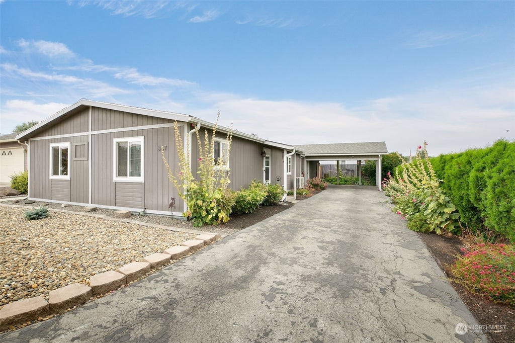 Welcome to your new home in the sought-after West Valley Country Club community! This 2-bedroom, 2-bathroom residence offers an open concept floor plan that is both spacious & inviting. The home features a new furnace & newer laminated hardwood floor throughout the kitchen, dining, & living areas, as well as in the guest bathroom, laundry room, & second bedroom. The primary suite offers a private en-suite bathroom for your comfort. Enjoy the convenience of a carport & a 12 x 18 shop, perfect for storage or hobbies. The low-maintenance yard includes a garden area, ideal for those who love to garden without the hassle of extensive upkeep. You'll have access to the community's fantastic amenities, including an in-ground pool & clubhouse.