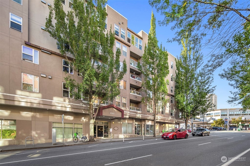 Urban Living at its best. NO RENTAL CAP on this oversized 1 bedroom condo in the newer, secure La Terrazza building. Secure and safe building just a few blocks west of Univ. of Washington campus. Open floorplan design. Primary bedroom features a walk-in closet. The unit features a secure assigned parking spot, covered deck, washer/dryer in the unit and storage/bike locker. This is a turnkey condo with Milgard Windows, newer carpet, fresh paint, fridge, water heater, waterlines, LVP bathroom floor and updated trim. The building offers a keyless secure lobby entrance w/an elevator, common area office space. Stroll to the U District’s dining, shopping, parks, & easy access to I-5 and 520. A great opportunity for both homeowners and investors.