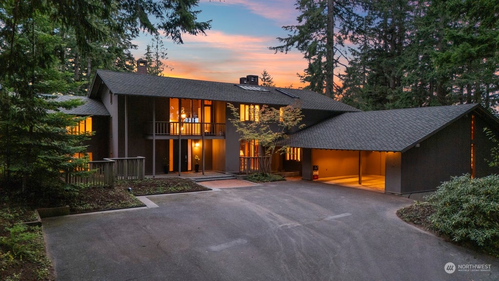 Waltz into this meticulously maintained 1969 gem, a true time capsule showcasing the mastery of midcentury design. Vaulted ceilings and a wall of windows bathe the space in natural light, while the smart layout offers a bedroom corridor separate from the primary suite, plus 2 bonus rooms with their own loft spaces. The lower level boasts a versatile bonus room, complete with a pool table and your very own darkroom. Behind the carport, you'll find a private workshop, perfect for creative projects & additional storage. Trimmed trees line the property revealing a gorgeously framed view of Bellingham Bay and the San Juan Islands. The adjacent .7-acre lot offers endless possibilities, at 1.77 acres this property is a rare find with room to grow.