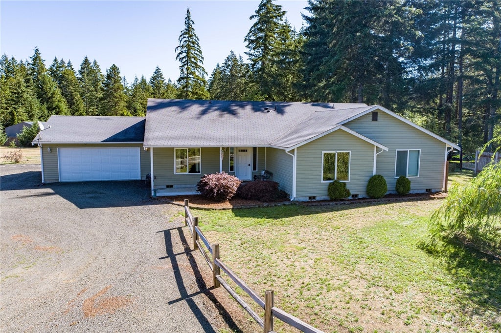 Charming Country Rambler - 4 Bdrm, 2 Ba on 1 Acre. Experience the beauty of one-story living in this expansive 2,320 sq ft country rambler. This charming home boasts an open floor plan, featuring a large kitchen with skylights, vaulted ceilings, a formal dining room, and abundant storage throughout. The property is enhanced with outbuildings, two kennels, and a basketball court, offering both convenience and recreational opportunities. The garage has been creatively transformed into a rec room, yet retains its functionality as a garage if preferred. Step outside to enjoy the expansive patio, accessible from the living room and primary bedroom, and take in the serene views of the large, level backyard.