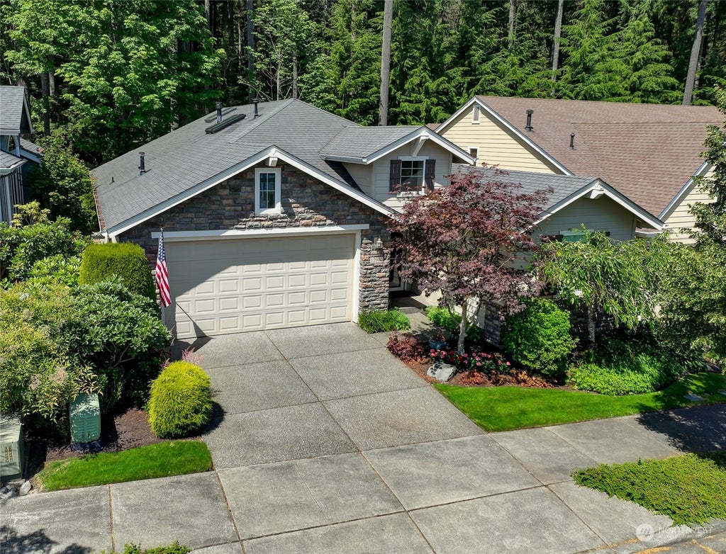 Captivating greenbelt views from this beautiful light filled Bainbridge home with a peaceful & private setting. The great room for casual living has a custom skylight w/uplighting + a dining room for those special occasions. Island kitchen w/addt’l cabinetry. Hardwoods thru main living areas. Primary bedroom w/a ¾ bath & walk-in closet w/organizers. Guest bedroom & full bath. Office w/glass doors + custom bookcase & cabinets. Upgraded CPVC plumbing w/PEX. Generous garage storage & pull-down ladder to flat attic storage. Relax & enjoy the woodland views on the partially covered deck & small garden space w/drip irrigation in the back & sides. Short jaunt to the clubhouse, the hub of Trilogy activities! Pre-inspected. Ages 55+