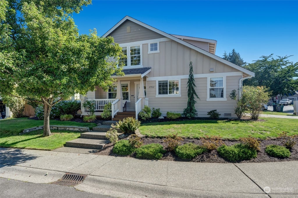 Welcome home to this charming, beautifully updated property minutes to downtown Duvall and a short drive to the tech centers on the Eastside. Sip coffee on your covered porch or enjoy the sunsets with your favorite evening beverage. An extensive remodel in 2019 included all new hardwood flooring, new stainless kitchen appliances, and stunning quartz counters. The rare main floor master is of special note. AC was installed in 2021 and a new furnace was added in 2023. The powder bath was remodeled in 2021 and the home has new updated lighting throughout. Features include a Ring security system, a Nest thermostat, and washer and dryer are included. All bedrooms have huge walk-in closets. This is the one!