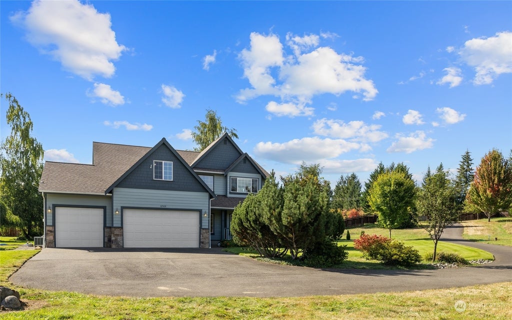 Amazing Mount Rainier View! Large home offers 4 bedrooms and 2.5 bathrooms along with a bonus room upstairs and an office or 5th bedroom downstairs off the rear living room, the third garage stall was converted into an ADU, the main level has hardwoods in the entry and formal dining area with carpet throughout the rest of the home (vinyl floors in kitchen and bathrooms), well appointed kitchen, all appliances stay with the home, 2.48 acres with outbuildings, a Sea Van storage container, and ample garden space, RV Parking with dump station, fruit trees, covered patio and Lanai area, propane generator is in place in case the need arises, equipped with heat pump, rural location just a few miles from the amenities of Yelm.