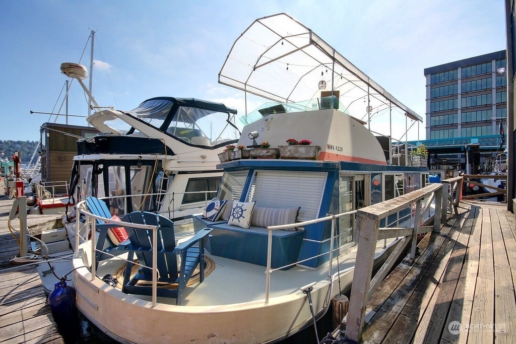 Welcome aboard "Shenanigans," a spacious, city-approved liveaboard houseboat on Lake Union at Waterworks Marina. Quaint & full of character, it’s ideal for full-time living or weekend getaways. Completely renovated in 2019 with $30K+ in recent upgrades, this 1-bedroom houseboat includes extra guest sleeping space, shiplap walls, LVP floors, stainless appliances, & ample storage. The oversized shower & separate head ensure comfort for 2. Enjoy the expansive rooftop deck with beautiful built-in bar+ lake & city views, along w/ spacious forward & aft decks. New water tank, auto-fill system, water heater, toilet, plumbing, & more. Comes furnished! On the Burke-Gilman Trail, near transit, SLU, tech hubs, downtown, & Fremont. Can finance it!