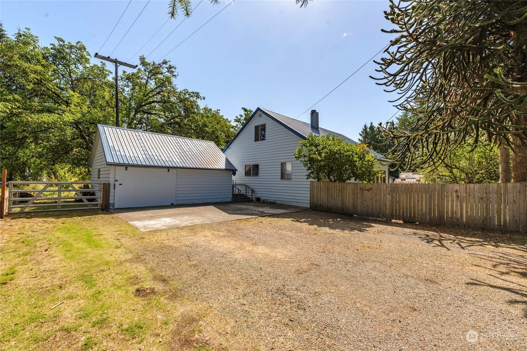 Experience the charm and serenity of riverfront living! Discover the perfect blend of tranquility and convenience with this unique homestead. Nestled on the river, enjoy fishing right from your own private retreat while immersing yourself in the natural beauty and abundant wildlife that surround you. This classic home features hardwood floors and a well-appointed kitchen with a cozy dining area. Step outside to your expansive deck and savor the stunning outdoor views and fresh air. The property boasts extensive amenities including a spacious barn, a large shop, a Quonset hut, a detached garage, and a greenhouse. Located just minutes from I-5, outlet shopping & charming historic downtown Centralia. Make this riverfront haven yours today!