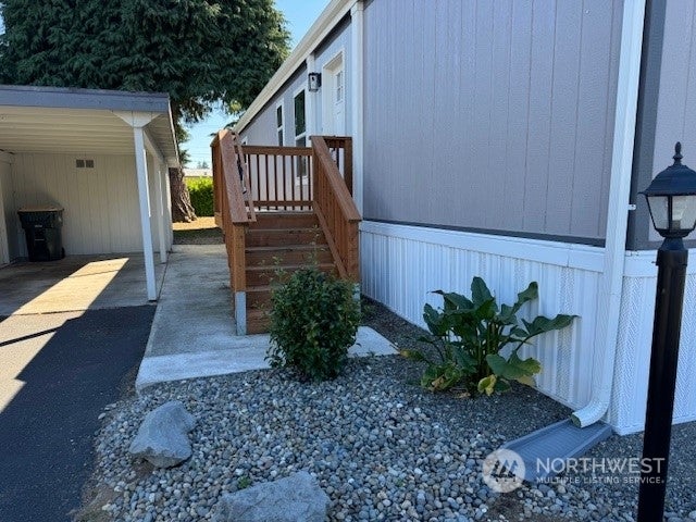 Lovely and new! One year old single wide Marlette with 2 br 2 bath. Covered porch in front and spacious deck in back, 900 sq ft in all. Electric forced air heat, vaulted ceilings, liny plank floors throughout the home, open concept mainliving area with spacious island. Storage shed, ample yard. Close to everything.