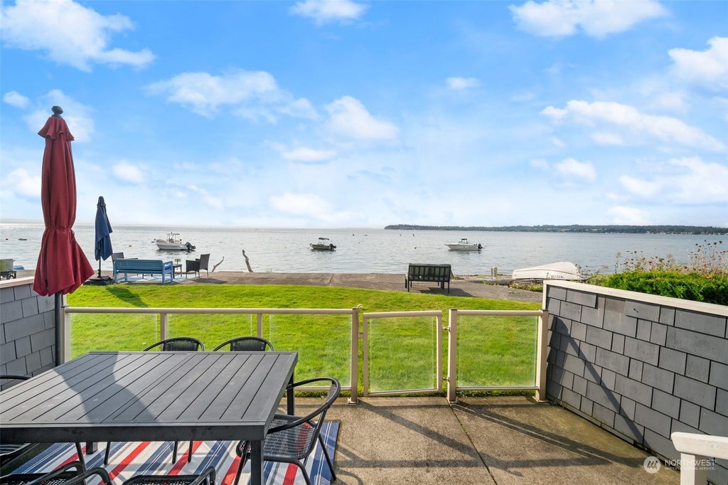 Discover unparalleled waterfront living in this 2-bedroom, 2-bath condo w/ unobstructed views. The open-concept main floor is bathed in natural light, w/ expansive windows and high ceilings. Entertain on the large private patio or enjoy the beach fire pit just steps from your door. The oversized primary bedroom offers the soothing sound of waves and stunning bay and mountain views from every window. Moor your boat out back for easy crabbing trips. With 3 yr new flooring, carpet, SS appliances, a newer hot water tank, excellent established HOA with low dues, this rare gem!