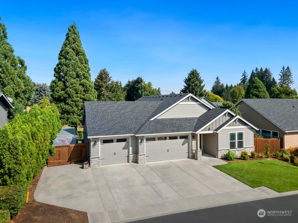 Experience luxury 1-level living in this stunning home, filled w/ natural light from the skylights & vaulted 14-ft ceilings in the great room. The kitchen is the focal point w/ a 10-ft island perfect for gatherings, SS appl, gas cooking, wine fridge, bev bar, & pantry. Whether you're hosting or just enjoying a quiet meal, the open layout makes every moment special. Wide plank LVP flooring, stone F/P, ceiling fans, & remote-operated blinds enhance comfort. The perfect prim ste features a soaker tub, lg step in shower, & W/I closet. Step outside to your covered patio w/ vaulted cedar ceiling, can lights, & fully fenced yard w/ sprinklers & drip syst. The 3-car insulated, heated garage has an extra-deep 3rd bay w/ sink, plus paved RV parking