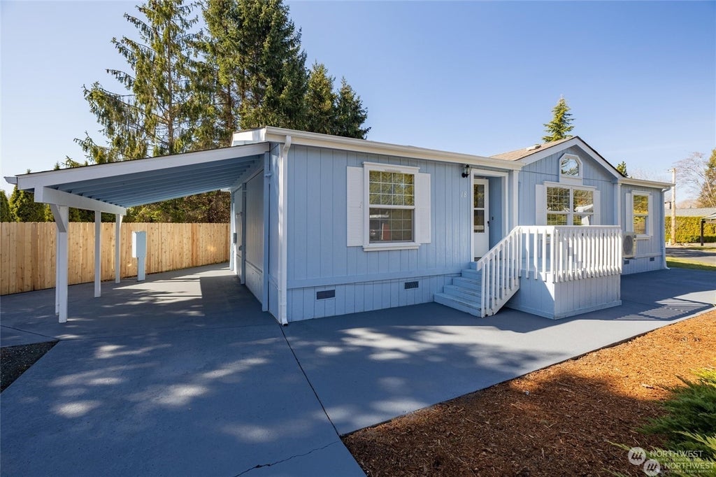 Dues are only $140!!! Yes, that’s no typo. $140.00 dues include water, sewer and land property taxes! Highly desirable 55+ retirement community in Birch Bay. This beautiful fully remodeled home boasts 1,593 sq ft, featuring 3 beds, 1.75 baths, new stainless appliances, granite countertops, vaulted ceilings, skylights, walk-in closet, and jetted walk-in tub in the primary bath. Home also has mini-split for low-cost heating & cooling. This home is in pristine condition with a beautifully landscaped exterior. Property has large carport, covered deck & spotless storage shed. Located at the end of the park which you will find quiet and peaceful, with plenty of parking. A one-time $500 HOA membership fee makes you 1/18th owner of the park!