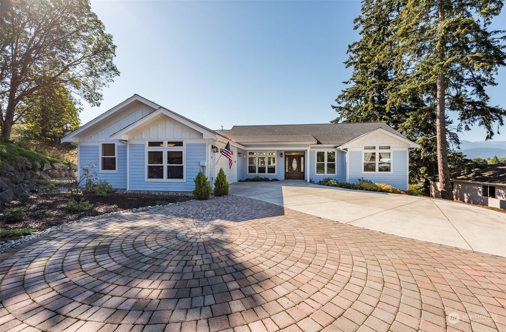 Beautiful mountain view home at the end of a quiet cul de sac in Woodland Heights, one of Sequim's best neighborhoods. Open layout with quality finishes and the primary bedroom suite on the main floor. Plentiful natural light from the south facing windows and skylights. Primary suite tucked away from the other bedrooms and living areas for maximum privacy. Decks off the primary suite and the great room with huge views to enjoy; your own beautiful fenced backyard and supreme privacy. Chefs dream kitchen with beautiful quartz countertops, soft close cabinetry, ample cabinet space, pantry, and a large island. Primary offers a soaking tub, double sinks, and beautiful shower. Efficient heat pump and propane fireplace. Pool Table will stay!
