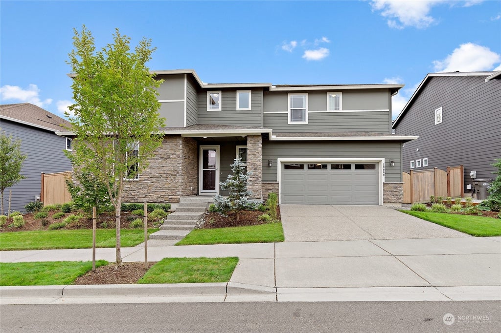 Introducing the Stanwood floor plan by Pulte, nestled in the desirable North Hill neighborhood. This thoughtfully designed home offers an open-concept living area with a main-floor den and powder room, perfect for a home office or quiet retreat. Upstairs, enjoy 4 spacious bedrooms, a large game room, and the laundry room. The $25,000 garage improvement elevates the space with epoxy flooring, a slat wall system, and high-end cabinets—ideal for a workshop, home gym, or streamlined storage. Sellers installed a heat pump which ensures year-round comfort and a Leafguard system meaning no more clearing gutters in the Fall. Located in the heart of Duvall, this home offers easy access to shopping, dining, and major commuting routes. Pre inspected