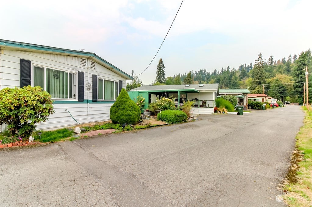 Discover this 2 bed, 2 bath home in a sought-after 55+ community with only 7 homes and low space rent! Located at the end of a quiet dead-end street, this home boasts extra-large bedrooms, a primary with a walk-in closet and soaking tub, and a second bedroom with direct access to the second bath. Natural light fills the space, and you'll love the clear-day Mt. Rainier views from the front patio. Stay comfortable year-round with mini-duct heating and air. The covered carport offers ample storage. With a little TLC, add to the unique features this home already has and creativity the previous seller incorporated, and this home has amazing potential - bring your vision and make it yours!