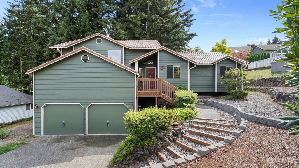 Welcome to this extraordinary home! Imagine sipping coffee on your east deck, enjoying the breathtaking views of the mountains and waters of the Puget Sound! The living space has an open floor plan, soaring vaulted ceilings, and a main floor primary suite with an ensuite bath. Enjoy granite countertops in the kitchen with a charming bay window, stainless steel appliances, and an extra utility sink for convenience. Lower level has a party size bonus/rec room. A spacious laundry area, and a half bath are an added convenience. Electric vehicle charging station included! Centrally located to the bases, ferry docks and CK Schools! This is your perfect blend of luxury, comfort, and convenience! Call your favorite Broker today to see it.