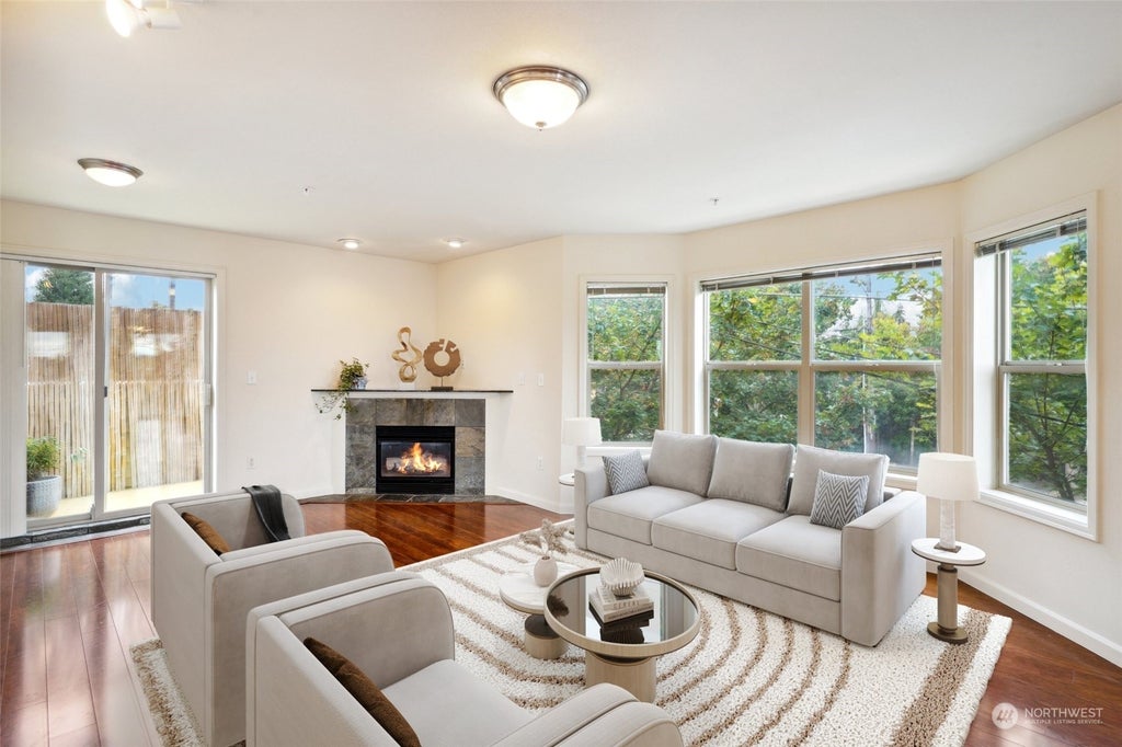 This stunning 2-bed, 1-bath condo is a true urban gem. Step inside to discover an inviting open-concept living space filled with natural light and a gas fireplace, featuring peek-a-boo views of both Rainier and the Seattle skyline. Cook from your well-equipped kitchen and enjoy the outside deck for your own peaceful retreat. With secured gated parking and an unbeatable location close to a variety of dining and entertainment options, this condo perfectly blends urban convenience with serene living. Right on the bus line with an easy commute to downtown Seattle! Don’t miss your chance to call this incredible space home!