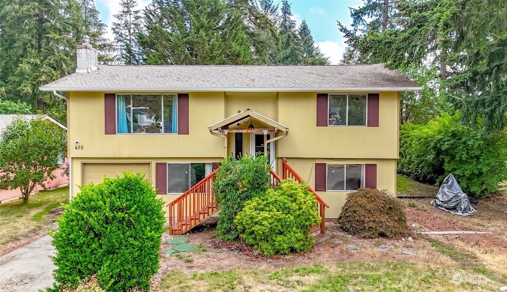 Welcome to the charming neighborhood of Tanglewild! This lovely split-level home features 3 bedrooms and 1.75 baths, with a spacious open living room complete with a cozy wood-burning fireplace that's perfect for the cold PNW nights! The kitchen boasts ample cabinet space and flows seamlessly into the dining area. Step through the French doors onto a large, beautiful deck, ideal for BBQs with access to great sized yard. Downstairs offer a family/utility room for extra convenience & true flex space, along with additional bedrooms & bath. Enjoy added privacy with no house behind you & a park next door. Located just a short commute from JBLM and close to shopping, restaurants, schools, and quick access to I-5.