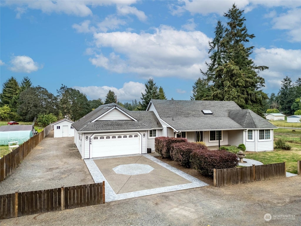 This beautifully maintained property sits on 1.07 acres of flat, useable land, offering an expansive and functional outdoor space with a fully fenced yard, large shed, RV parking, stamped concrete driveway and walkways, and covered patio and porch. This 1731 sf Rambler features 2 bedrooms plus an additional versatile room that can serve as a den or an extra bedroom, and 2.5 bathrooms. The primary suite is a true retreat, complete with a full bathroom and a generous walk-in closet. This home features a thoughtfully designed open floorplan enhanced by vaulted ceilings and natural light streaming through skylights and wood-wrapped windows. This charming home blends space, functionality, and comfort, making it a perfect place to call your own.
