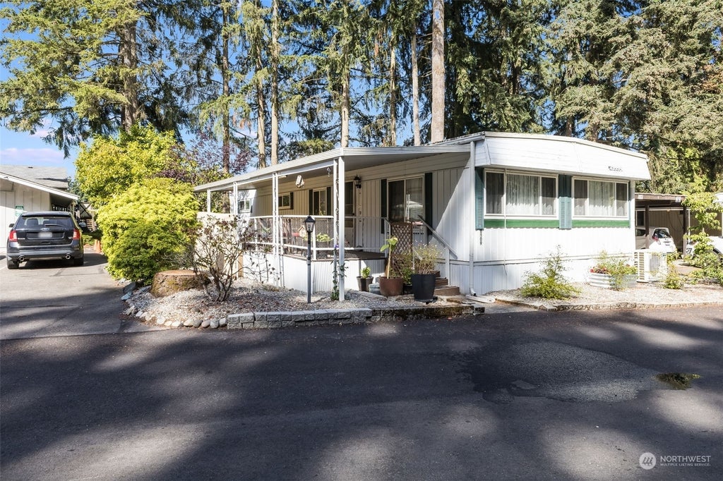 Welcome to this updated home in Crestview MHP a 55+ community in Puyallup. This home has 1,080sqft with 2 bed & 1.75 bath. Walking in you are delighted by the open living room w/abundant light, new mini-split to keep you cool, new LPV flooring throughout w/warm tones & easy to maintain. Dining & Kitchen are open & connect easily with newer appliances. The primary bedroom has private 3/4 bath, large walk-in closet & sliding door leading you out to back yard. 2nd bedroom has closet with shelving for storage & pull out drawers. Enjoy your covered porch & patio area that include roll down sun shades. Home has 1 car carport, large storage shed & fully fenced yard. Park rent is $735 a month. Located minutes to downtown Puyallup, shopping & dining