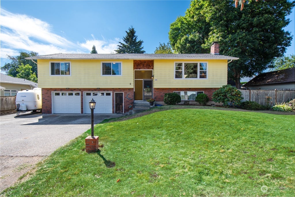 Felida split level on an oversize lot. 4 bed, 3 bath home on .38 acres! Enjoy your morning coffee from the upstairs deck that overlooks an expansive backyard filled with fruit trees and bushes including; cherries, blueberries and grapes. Basement with separate entrance could be used as a separate living space. Buyer to verify. Ample parking including space for RV. So much potential!