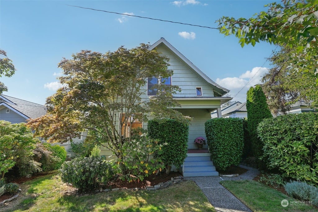 Absolutely charming 1915 farmhouse on large level lot less than 3 blocks from Green Lake! In addition to an amazing location, this lovely home has great features & updates: huge detached 2-car garage with EV charging; large deck leading to fenced backyard; additional parking off alley in back; heat pump for A/C & heat; new carpet Aug 2024. From the front porch, enter to the foyer to find soaring high ceilings & abundant natural light in the large living room + dining room with beautiful inlaid HW floors. Kitchen w/ plenty of counter & cabinet space leads to a bright sunroom w/ access to deck. Upstairs, find 3 BRs w/ large closets + a full bath. Fully finished lower level has a BR, office, 3/4 bath, wine cellar & laundry room. Welcome home!