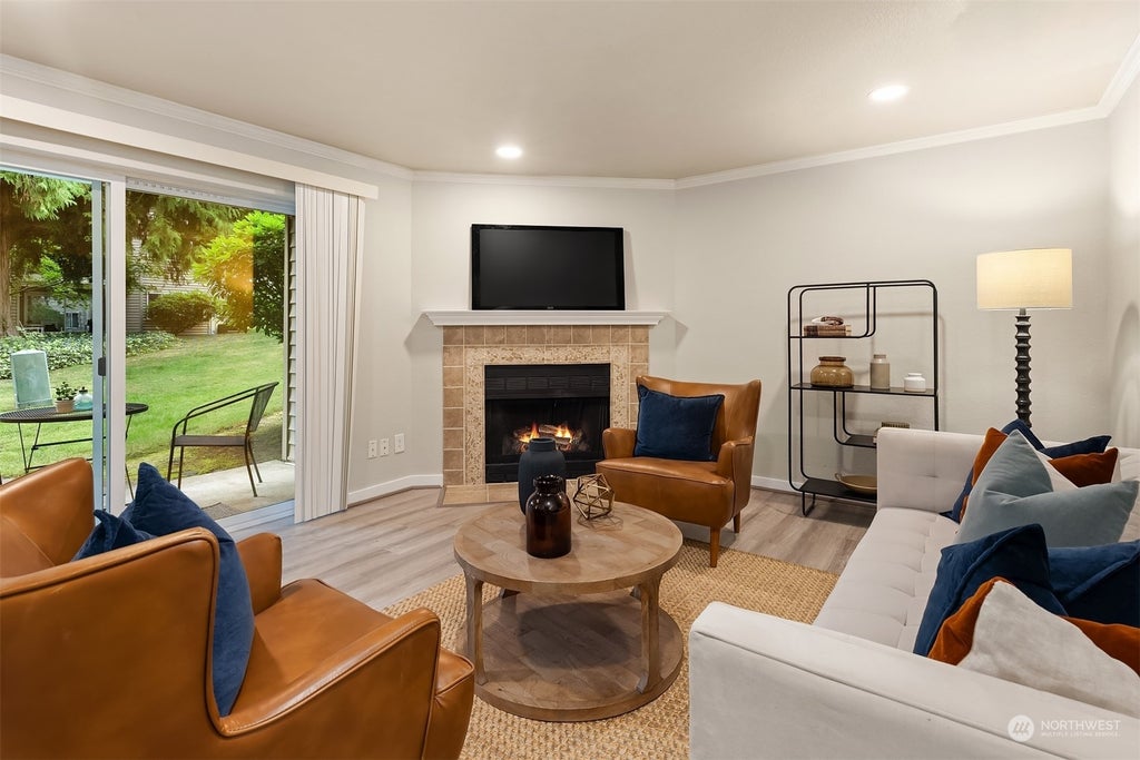 This oversized, garden-level condo offers no shortage of quiet, convenience and space to sprawl. Featuring brand new SS appliances, new floors, lighting, fresh paint, and an updated bathroom, including a beautifully tiled shower , the unit is truly move in ready. Washer and dryer are both in-unit, along with several additional storage closets AND a kitchen pantry. An inviting WB fireplace brings warmth to the cozy living room, opening up to the private patio and shared community grounds. Just outside the unit are two deeded parking spaces, perfect for easy access. The pet-friendly Esplanade Community includes a community pool, clubhouse and NO RENTAL CAP. Seconds to Juanita Village and minutes to Totem Lake, Downtown Kirkland & Bellevue.