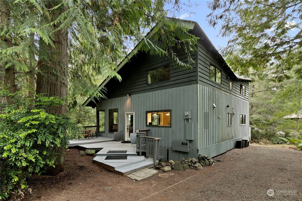 Don't miss this beautiful 3 bdr/1.75 bath Harstene Pointe home. This home has the perfect combination of cozy cabin with wonderful modern updates. The main floor features beautiful laminate floors, a gorgeous remodeled kitchen with granite countertops, a dining room, large living room with vaulted ceilings and a wood burning stove, a primary bedroom with a 3/4 bath and laundry room. The upper level has 2 additional bedrooms and a full bath. The yard has two decks for entertaining. Harstene Pointe Community offers a clubhouse, a swimming pool and hot tub, three tennis courts, basketball court, pickle ball court, nature trails, a marina, boat launch, picnic areas and 3.5 miles of private beach.