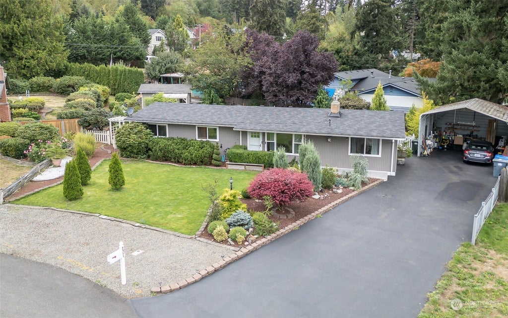 Discover this beautifully updated rambler, perfectly situated on a spacious, professionally landscaped lot in a serene cul-de-sac. This turn-key home features a stunningly remodeled kitchen and bathroom. Newer roof, flooring, and fresh paint throughout. With 3 bedrooms and 1 bath, 2nd kitchen & additional finished room ideal for an extra guest room, this 1,344 sq ft home offers ample space for comfortable living. The property also boasts a generous 16x16 outdoor shed equipped with electricity, perfect for home office, gym, game room, hobbies or additional storage. Enjoy the convenience of an oversized carport and plenty of extra space. Located within the Puyallup School District, this home is ready for you to move in and make it your own!