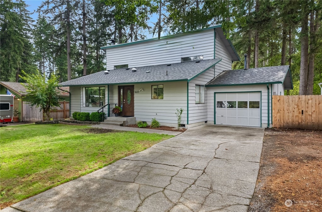 Great find in the quiet Lake Forest community! This tri-level, 3 bedroom, 1.75 bath home features several updates to include new flooring, updated bathrooms and a beautiful kitchen remodel. Use the extra bonus space for dining or grab a seat at the kitchen island. The spacious living room is complete with a cozy wood burning stove. Home sits on a large fully fenced lot with storage shed and covered brick patio - with hot tub! Roof is less than 10 years old, and the home has been well maintained- ready for its new owners! Easy access to I-5, JBLM, schools and more.