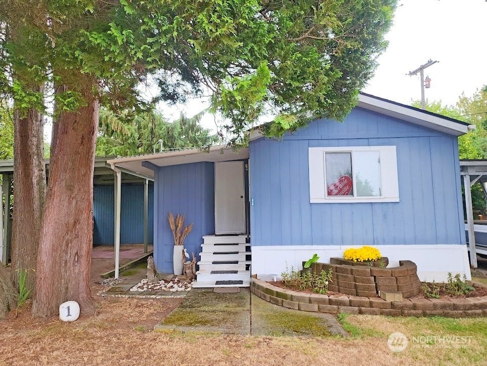 Cozy-Cute-Clean-Affordable-Well-Maintained & Lightly lived in Manufactured Home with an added on 160 Square ft Great room! Feels like a Doublewide! Homes rarely become available in this small 55+ park! Vaulted ceiling Living room off Eat-in Kitchen. All Appliances, select Furniture, Electric Mower with Charger, Weed Eater & Yard tools included. Carport has a roomy Storage Shed Plus Additional Storage Shed for extra Secure Storage. The roomy Treed Backyard has a Paved sitting area tucked behind the Private Fence. New Roof in 2009 with 25yr Warranty. Club House includes Laundry room and Showers. Convenient location Close to PSNS, Ferry, Hospitals, and short walk to Bus line. Selling As Is*