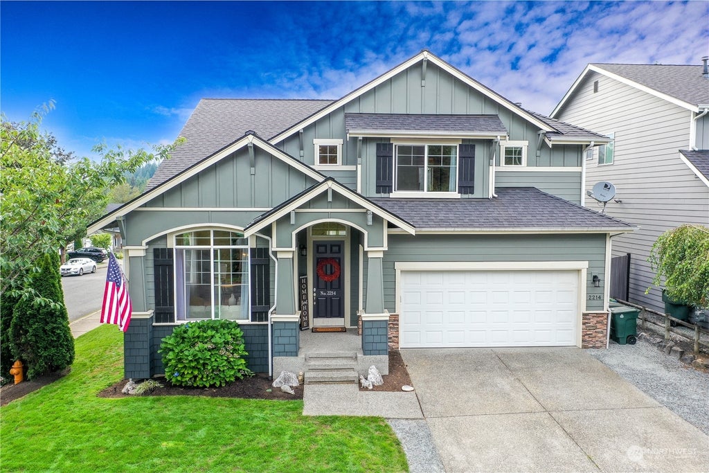 This beautifully updated one-owner Craftsman style home on arguably the best lot in Bicycle Tree Village is move-in ready with fresh interior paint, newer heat pump/AC, new flooring and carpet. This home offers 2,806 square feet, vaulted ceilings, with 3 bedrooms upstairs, main level office, large loft and an incredible primary suite with gas fireplace, sitting room and oversized soaking tub. Entertain with ease in your spacious kitchen and eating nook that opens to the family room. The garage is wired for EV charging. This home is conveniently located just minutes from grocery stores, breweries, bus lines, Centennial Trail, restaurants, and shopping at Snohomish Station. Easy access to Hwy 9 and Hwy 2.