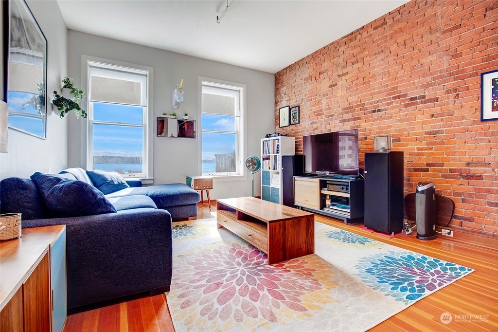 Own your piece of history! Rich with tradition as the former iconic Colonial Pacific Hotel, this top floor condo is truly one of a kind. Soaring ceilings, exposed brick walls and 2-level floorpan provide a unique NYC loft feel, and the views will take your breath away. Drenched in natural light, and beaming w/character. Generous primary suite w/walk-in closet. 2nd upper bedroom, w/Murphy Bed option, flexes into office or workout area. Sleek remodeling touches blend perfectly w/period details. Serene patio/deck, fir floors, built-ins, A/C & storage. Skybridge to pkg garage w/monthly parking available. Situated near the vibrant Seattle waterfront, and just steps to Pike Place, SAM, ferries and so much more. Walk scores don't get much higher.