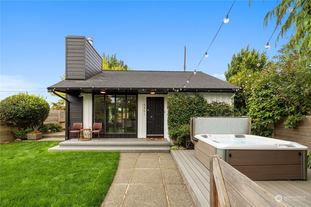 Tucked away at the west end of the lot, this mid-century gem offers tranquility, privacy and endless potential. Maybe even space to build a DADU along 35th Street? This home shines with a sleek updated main bathroom and kitchen featuring waterfall quartz counters and stainless steel appliances, a new primary suite, and recently updated flooring, windows, plumbing, and electrical systems. Additional upgrades include insulation, interior/exterior paint, and air conditioning. Walls of glass frame a gorgeous yard, inviting seamless indoor-outdoor living. An automated gate enables the ultimate convenience and vehicle access off the alley. Move in and enjoy the tranquility, modern touches, and unique charm of this special home.