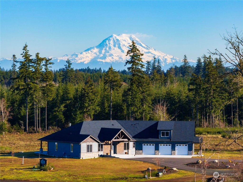 Top notch quality throughout this Custom Spec home built by a local builder w/ stunning architecture! Gorgeous timber framed lodge style front & rear porches, oversized front door & windows throughout, soaring 17’ ceilings & stone wrapped propane FP w/ real wood mantel. Chef’s kitchen w/ GE Café appliances, Advantium double oven & a massive pantry. Main floor primary BR w/ ensuite bath & huge walk-in closet. Other features include laminate flooring throughout, carpet in secondary BR’s, custom light package, expandable solar system, heat pump w/ A/C, wood wrapped windows & clear hemlock interior trim package. Over 3000 SF of poured concrete. 1260 SF garage & tons of room for a shop or ADU. 1 GIG FIBER READY! Easy commute to Olympia.