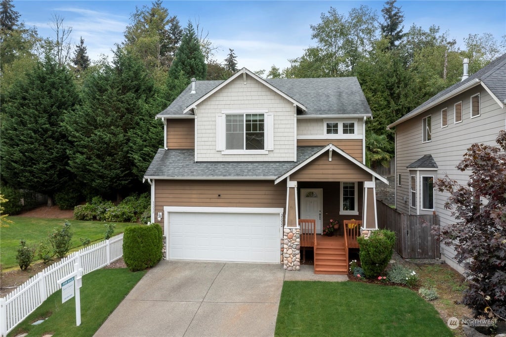 Don't miss out on this charming modern home with water views and an open layout centered around a spacious kitchen & great room with a fireplace—ideal for gatherings. Soaring ceilings & extended hardwood floors flow into the kitchen & casual dining area with a breakfast bar, leading to a formal dining room. Built-in office area offers serene views of Lake Geneva, a private park, and nearby lake access. Loft + bedrooms upstairs, including a primary suite with a 5pc bath & oversized walk-in closet. Fenced backyard with terraced garden, patio, and sprinklers. Easy access to major arterials, shopping, and restaurants. High-efficiency Mitsubishi heat pump!